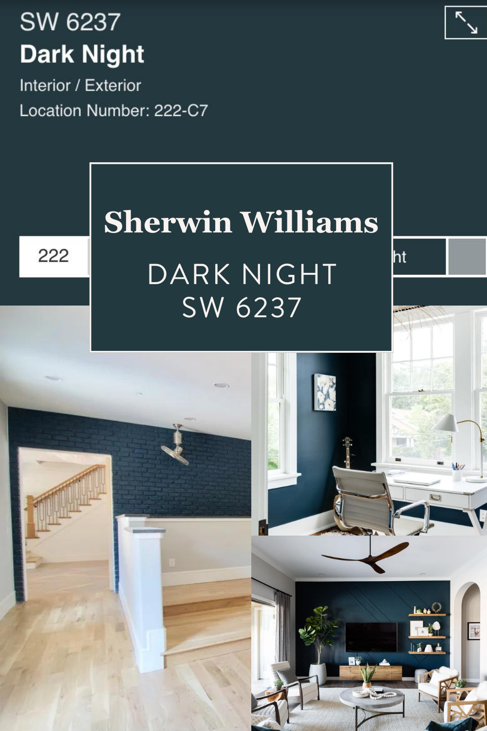 Web the color recommended for bathroom walls is dark night sw 6237. Find out its details, specifications, best coordinating colors, and similar options. This rich and deep shade from sherwin williams is a perfect choice for. Web learn how to use sherwin williams dark night sw 6237, a dark blue with deep green undertones, in your home. View interior and exterior paint colors and color palettes. See similar colors, coordinating colors, paint color palette,. Web sherwin williams dark night is what the ocean will look like under a full moon. Web learn about dark night, a deep, dark blue with slate undertones, and how to use it in your home. This color has been described as a dark and deep teal blue. This rich and mysterious hue creates a.